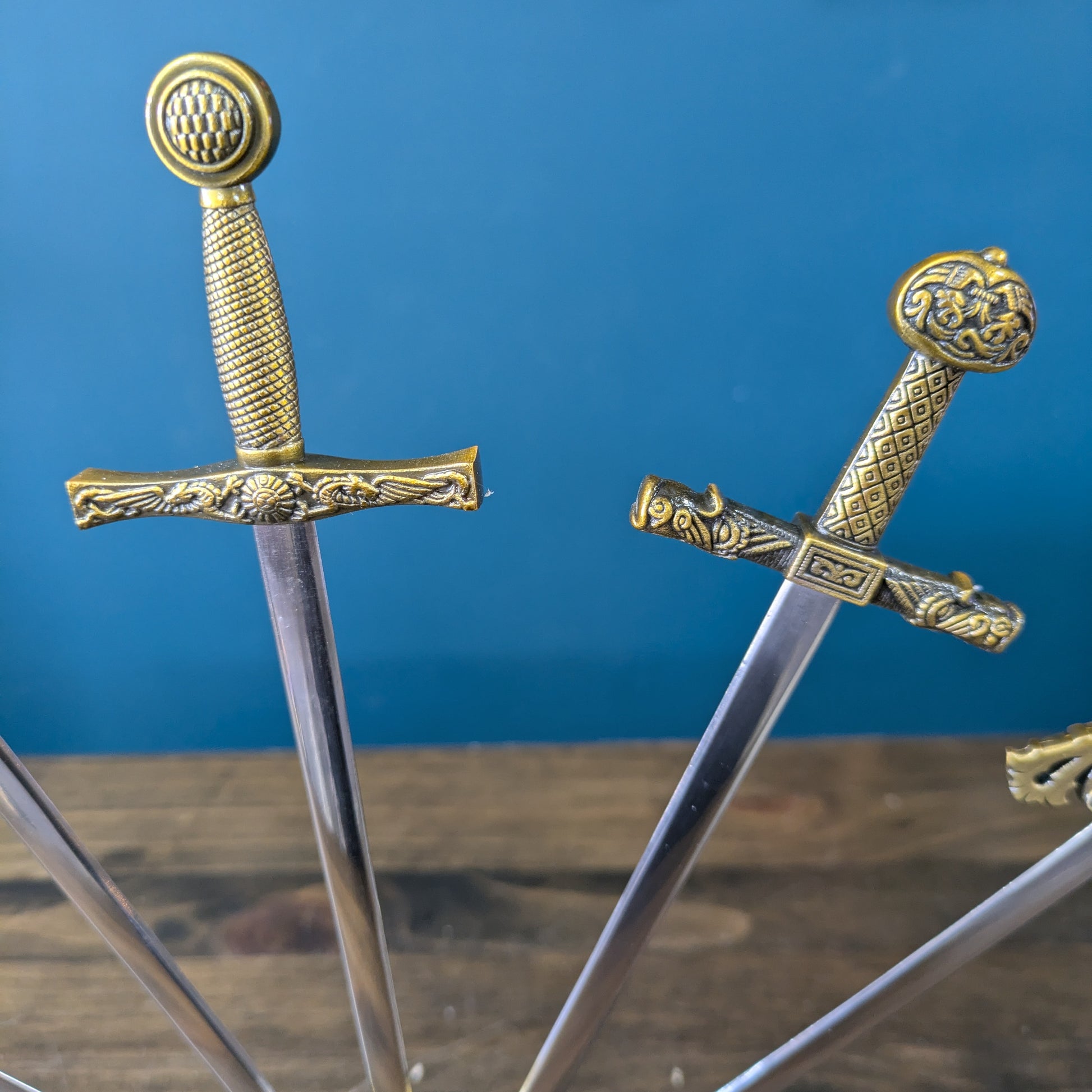 A great collection of mini swords, can be used as a letter opener.