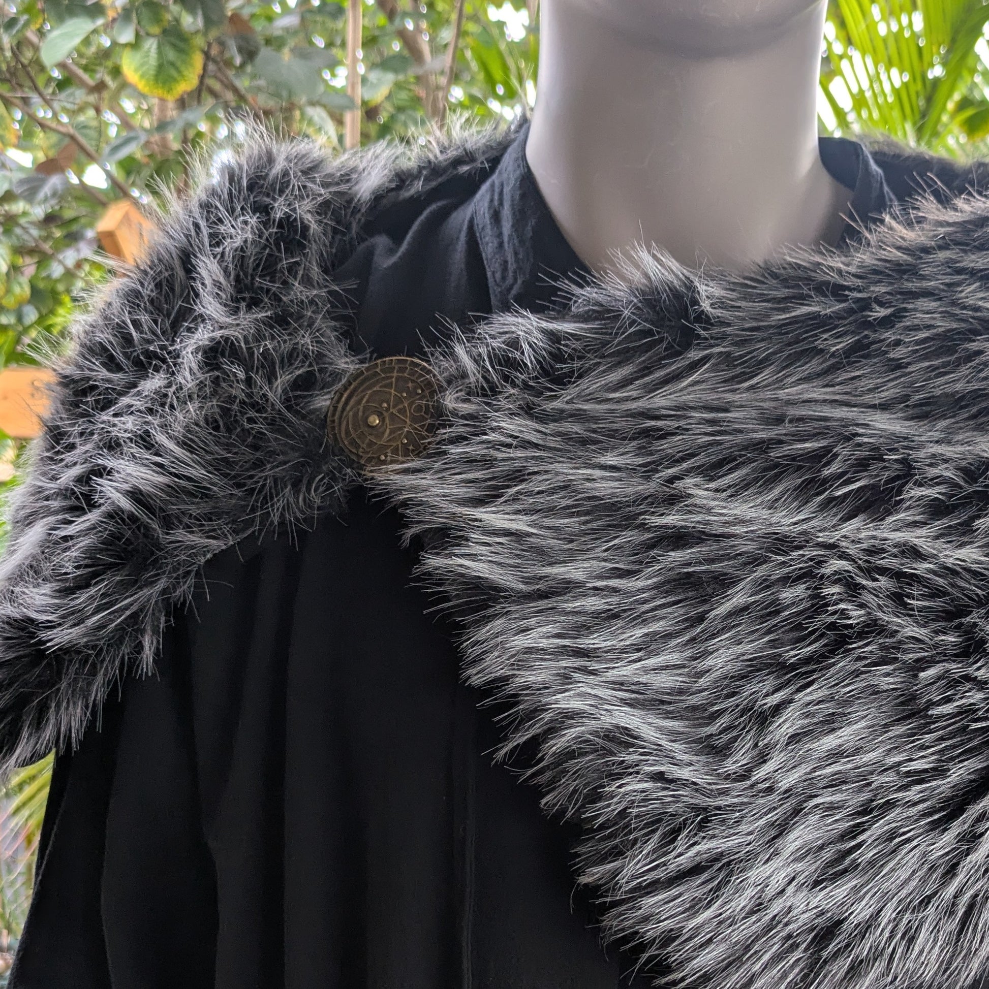 Complete your Medieval outfit and stay warm with this faux fur shawl, unisex style.