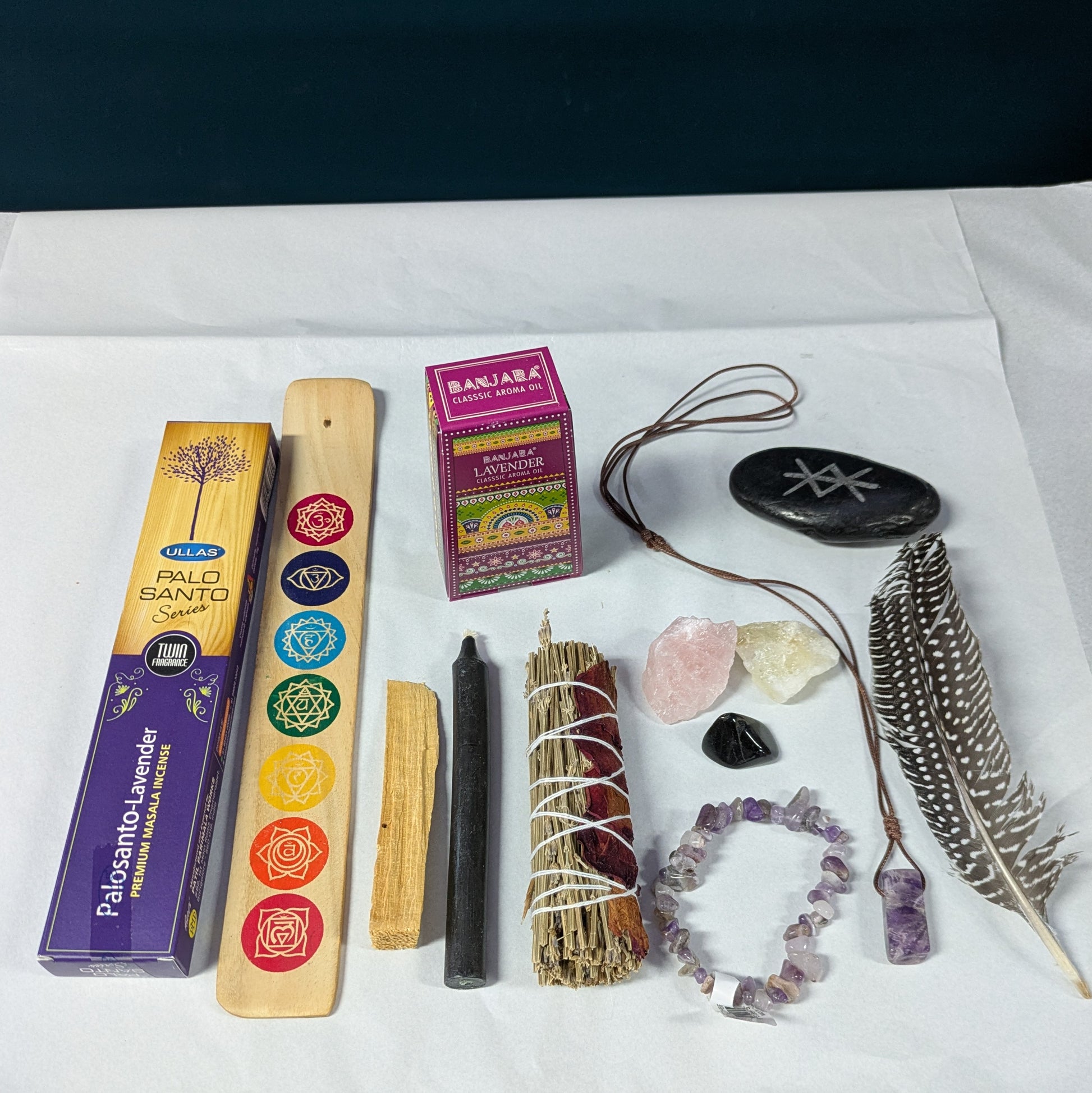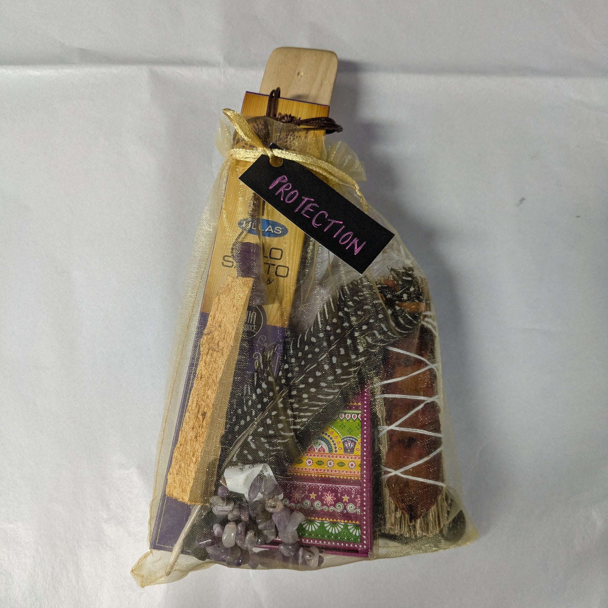 This pack includes a variety of items to help ward off negative energy and bring positivity into your life. With a blend of crystals, sage, a protection oil, this pack has everything you need to cleanse your space and protect yourself. Whether you're into witchcraft or just looking for a little spiritual boost, this pack is a must-have. Give the gift of spiritual protection to a loved one or treat yourself to some good vibes with our witchy protection pack.